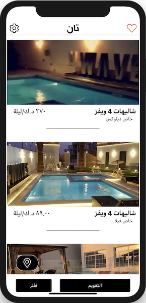 تطبيق تان يمنحك حرية الاختيار بين مختلف أنواع الشاليهات والمنتجعات والفنادق لتسهيل طريقة الحجز بأفضل الأسعار.